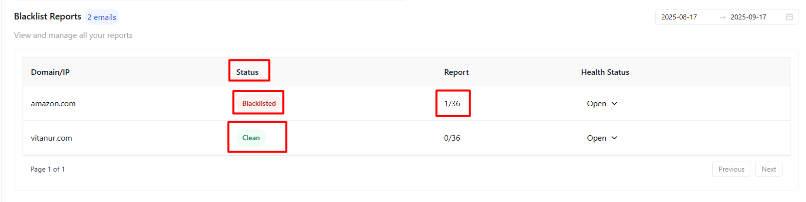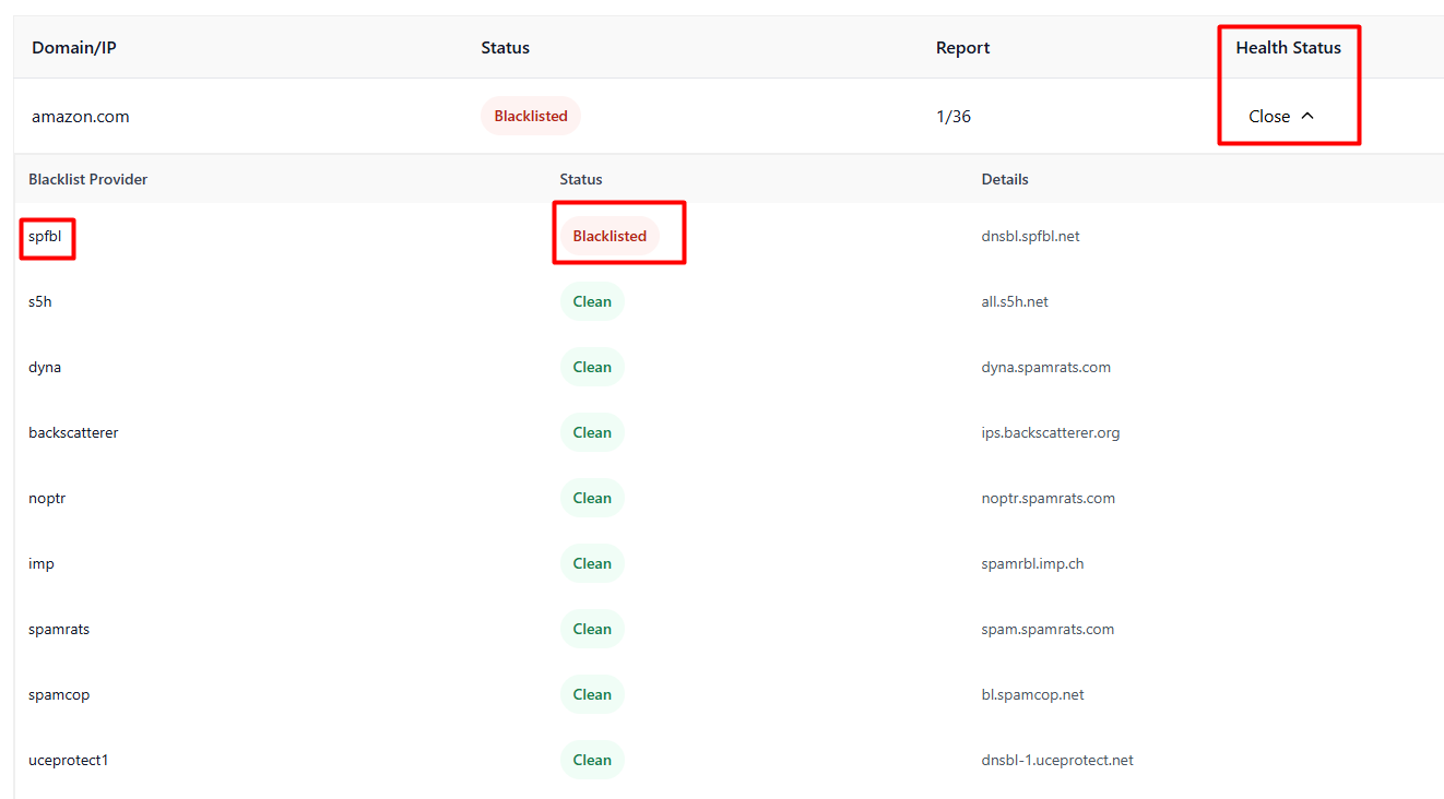 Our tool runs an instant free domain health check. Within seconds, you’ll see whether your domain is clean or blacklisted, along with a detailed breakdown of issues.
