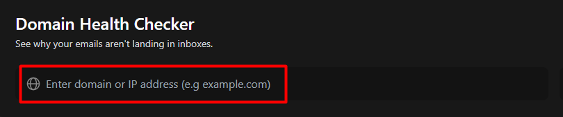 Start by typing your domain name or IP address (e.g. example.com) into the input field. The Domain Health Checker will scan your domain across multiple sources to assess its reputation.