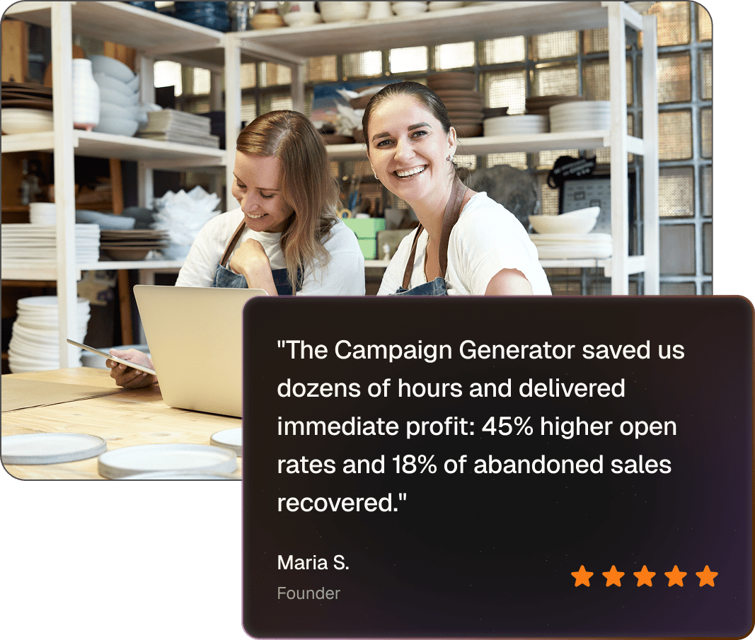 As a small business owner, you wear many hats. Let our AI be your marketing expert. Instantly build automated email campaigns that welcome new subscribers, win back lost sales from abandoned carts, and keep customers coming back, all while you focus on running your business.